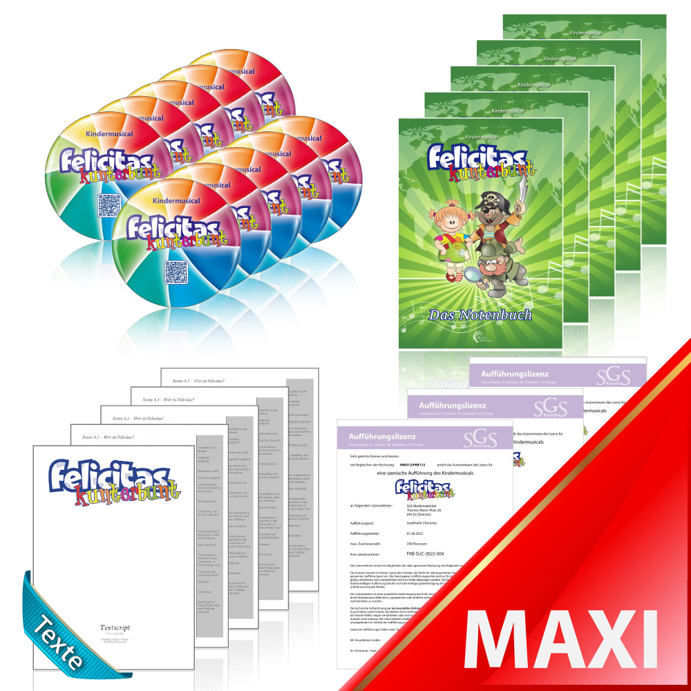 Felicitas Kunterbunt Aufführungspaket für Schulen und Chöre MAXI