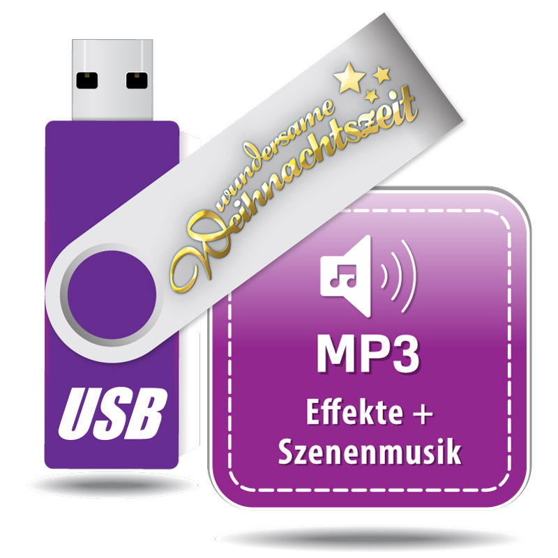 Alle Szenenmusiken und Effekte zum Kindermusical im MP3-Format auf einem handlichen USB-Stick.